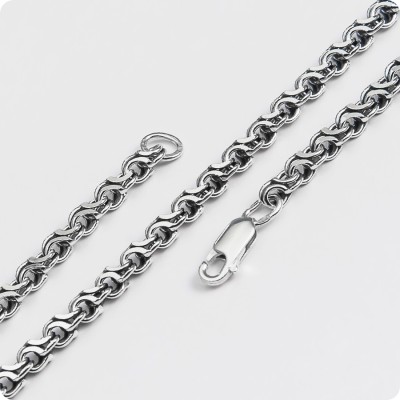 Универсальный дизайн плетения подойдет абсолютно всем, а потому такая цепочка может стать прекрасным подарком другу или родственнику в независимости от пола. Прочная, красивая и оригинальная цепь с плетением Москвичка (с чернением) идеально смотрится с оберегом любой формы, а также, хороша в качестве самостоятельного украшения. Прочно спаянные звенья и надежный замок завершают список достоинств этой цепи.
